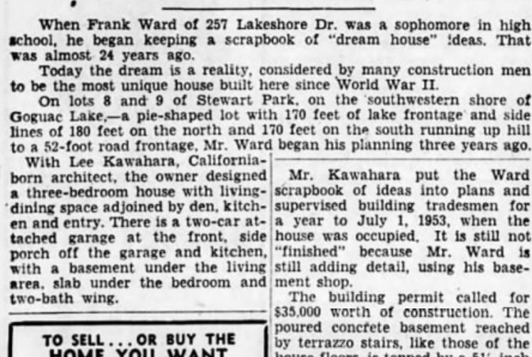 Kawahara returned to California and designed many large-scale and commercial buildings, but the only proven residence he ever completed was the Ward House in Battle Creek. (EDIT: another Kawahara designed residence in Battle Creek can be seen here ) That the home could be destroyed in a matter of days is truly a shame, but it is unfortunately increasingly the norm.