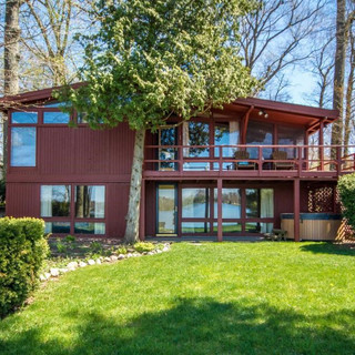 This light filled mid century modern home makes the most of the Lake view and offers plenty of space to enjoy your time there. Unique vintage fireplace and beams throughout. Love the wraparound deck on the south and east sides, lets you soak up the sunshine, wherever it may fall.