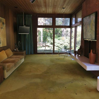 This 1965 post and beam home sits on a 1.43 acre beautiful lot with almost 300 feet of Bayou waterfront. The walls of glass make the most of the view but facing north means the house doesn't heat up too much from direct sun. The limited interior photos show an all-original state, which we love. Wood paneling and concrete floors give this house a great set of bones to work with.